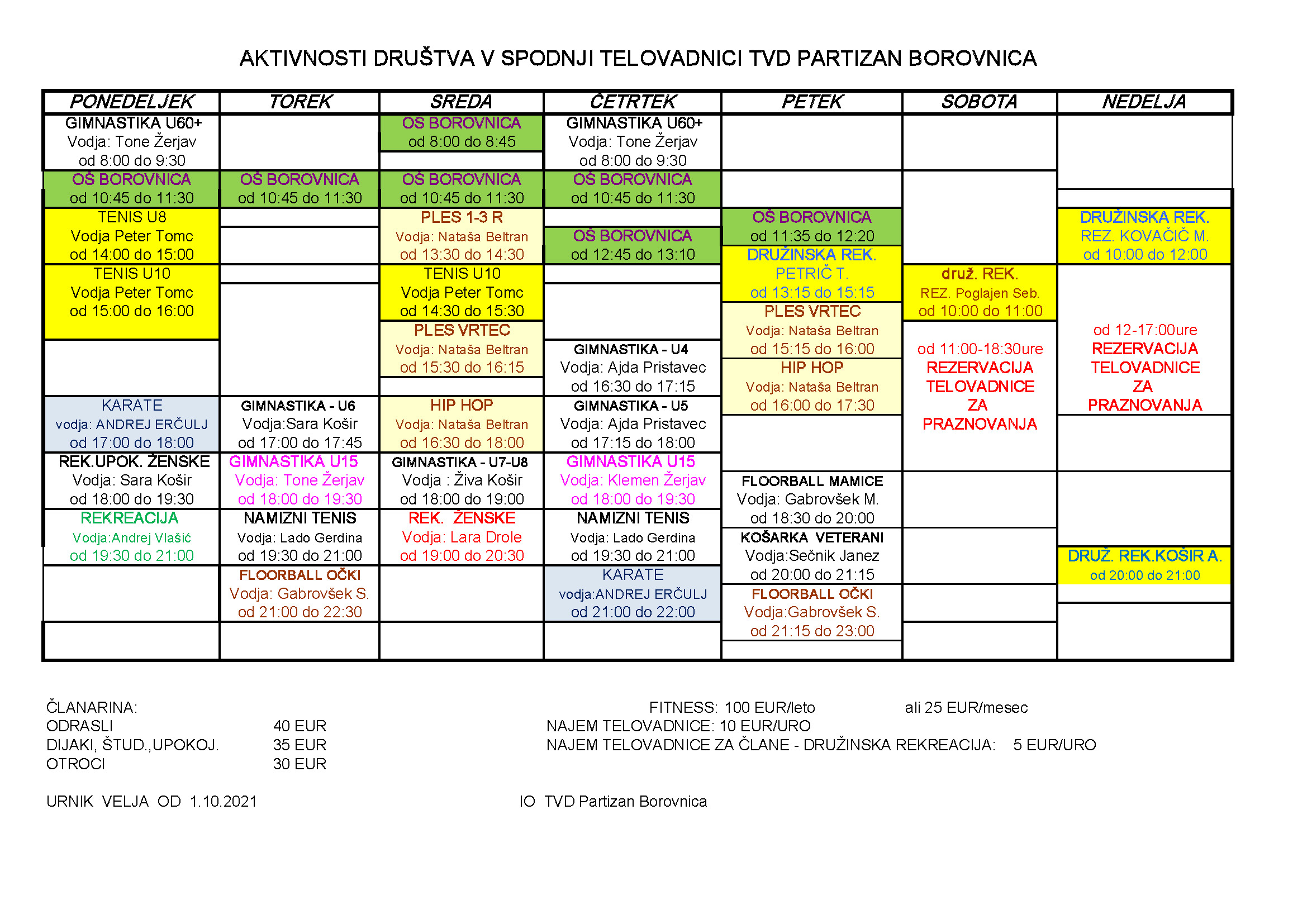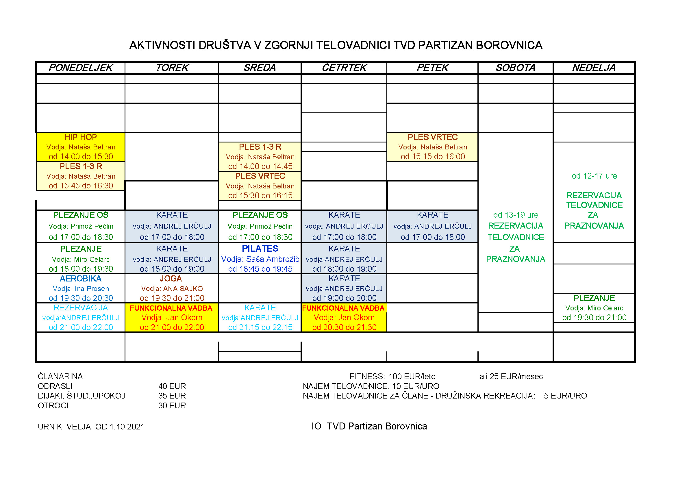 Obljavljamo nove urnike, za vse tri telovadnice, ki veljajo od jutrišnjega dne. Za udeležbo na vadbah prosim upoštevajte priporočila NIJZ (razdalja, maske v skupnih prostorih, razkuževanje rok), starejši od 15 let pa potrebujejo tudi pogoj PCT. Urnike najdete tudi na povezavi URNIKI.