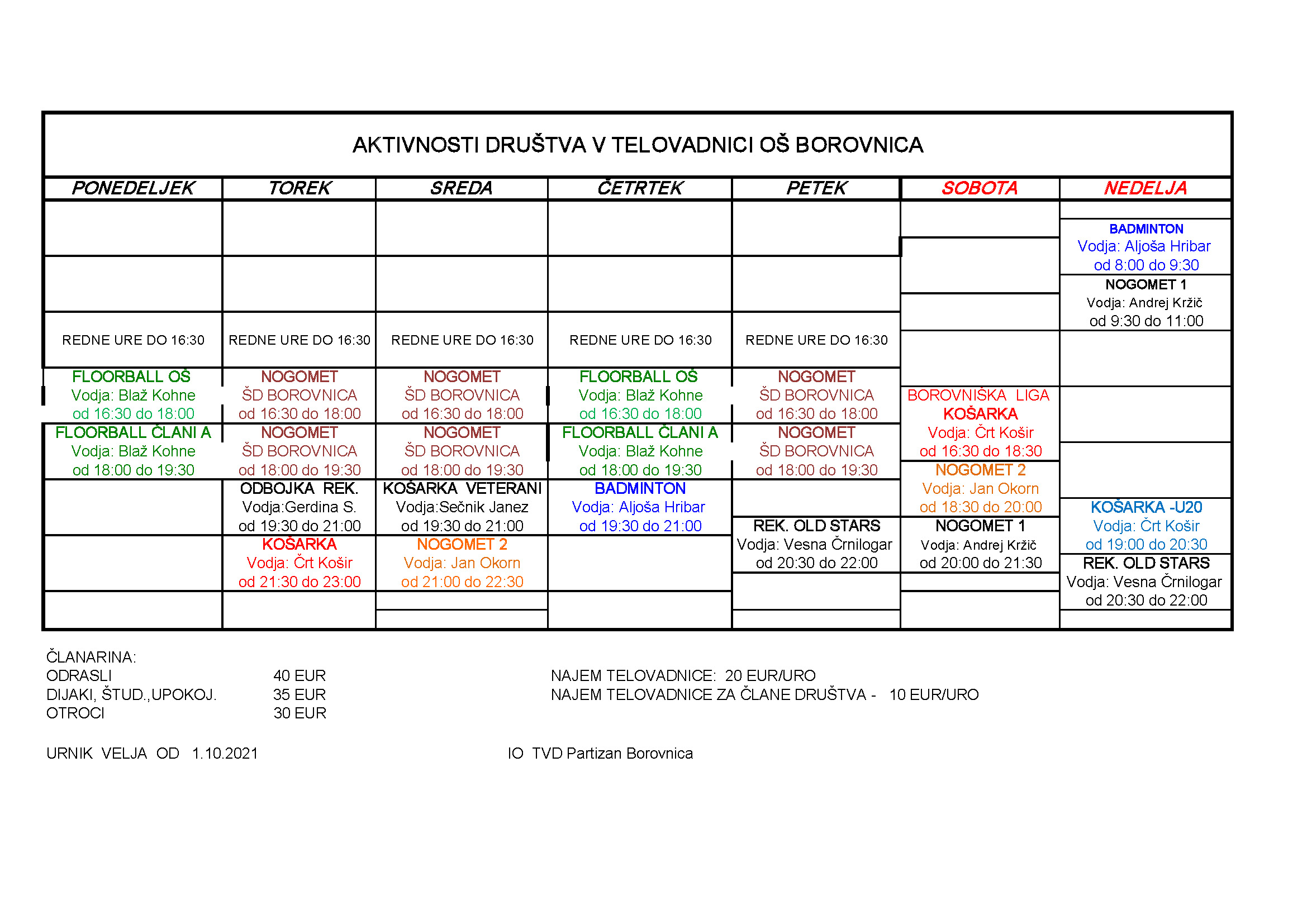 Z novim letom so se nekoliko spremenili tudi urniki. Nove urnike najdete na povezavi in spodaj.